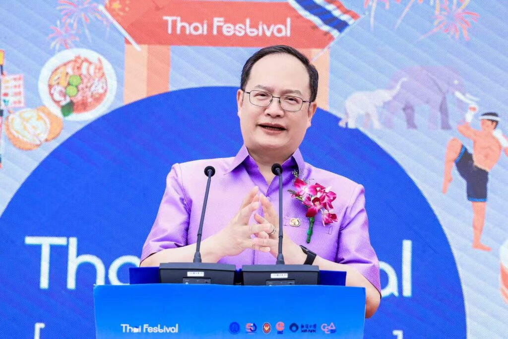 2025年6月28日,泰王国驻华大使韩灿才阁下在北京主持泰国风情节开幕仪式。中国外交部亚洲司参赞王德鑫先生、北京朝阳区外事办公室副主任李海波先生、泰国创意经济局(公共组织)副局长因塔潘·布阿丘先生、泰国团队、在华泰国私营企业管理者、中国媒体以及在京泰中两国民众出席开幕式。